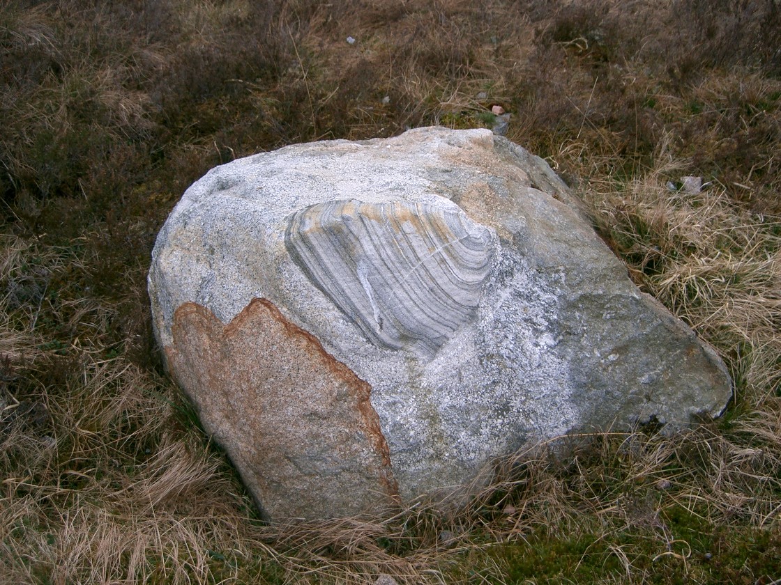 further on, just beyond a lochan at a substantial cairn with shelter wall, as illustrated above.