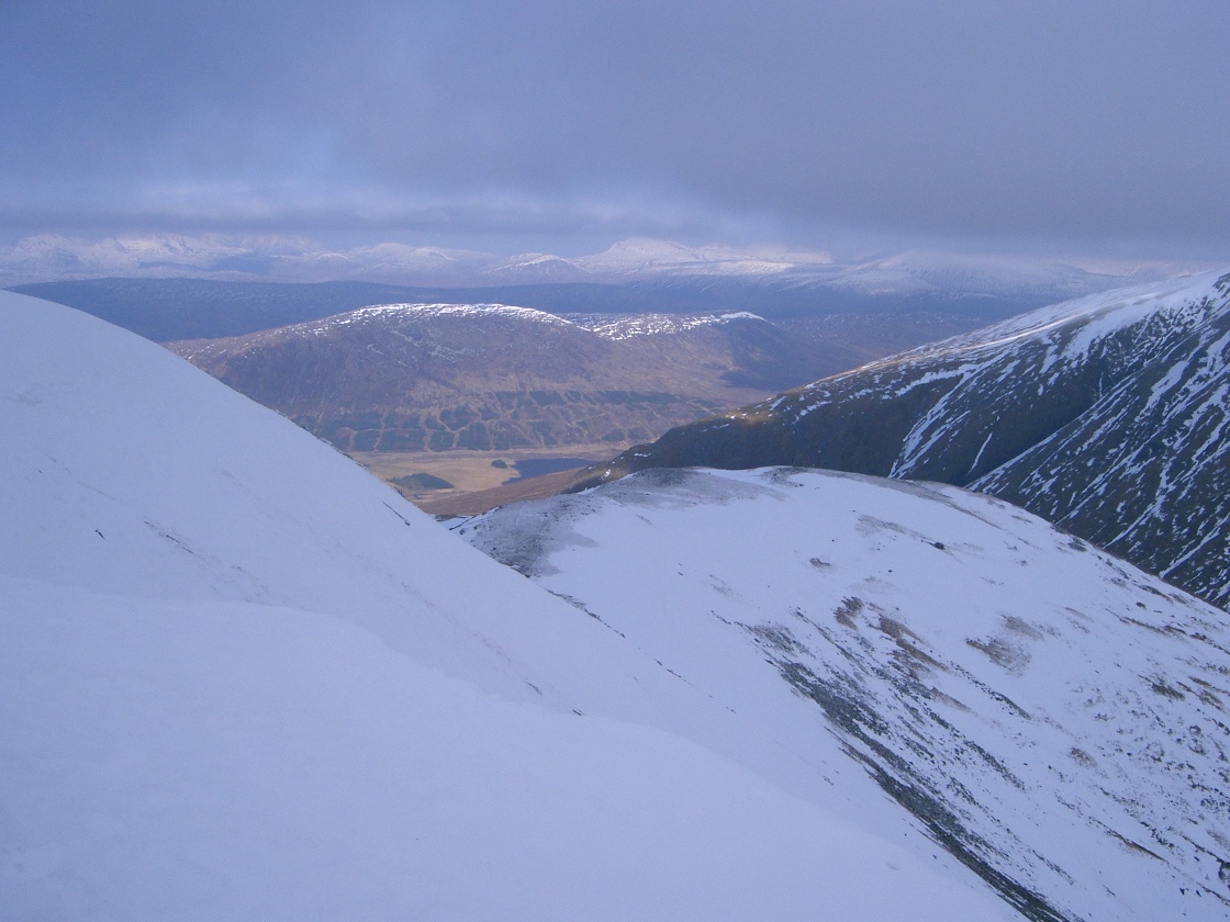 | 1120 | 1035 | SE to bridge over R. Carron, then ascend hillside SE heading straight to summit of M Moruisg |