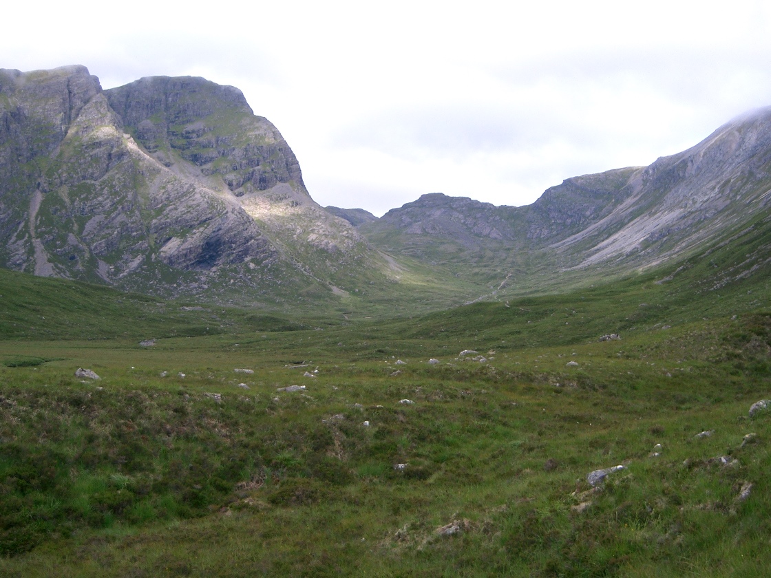 | 1130 | Contour on faint path horizontally SW round pt 769 to above bealach lochan, then directly down path to main valley path by lochan. |