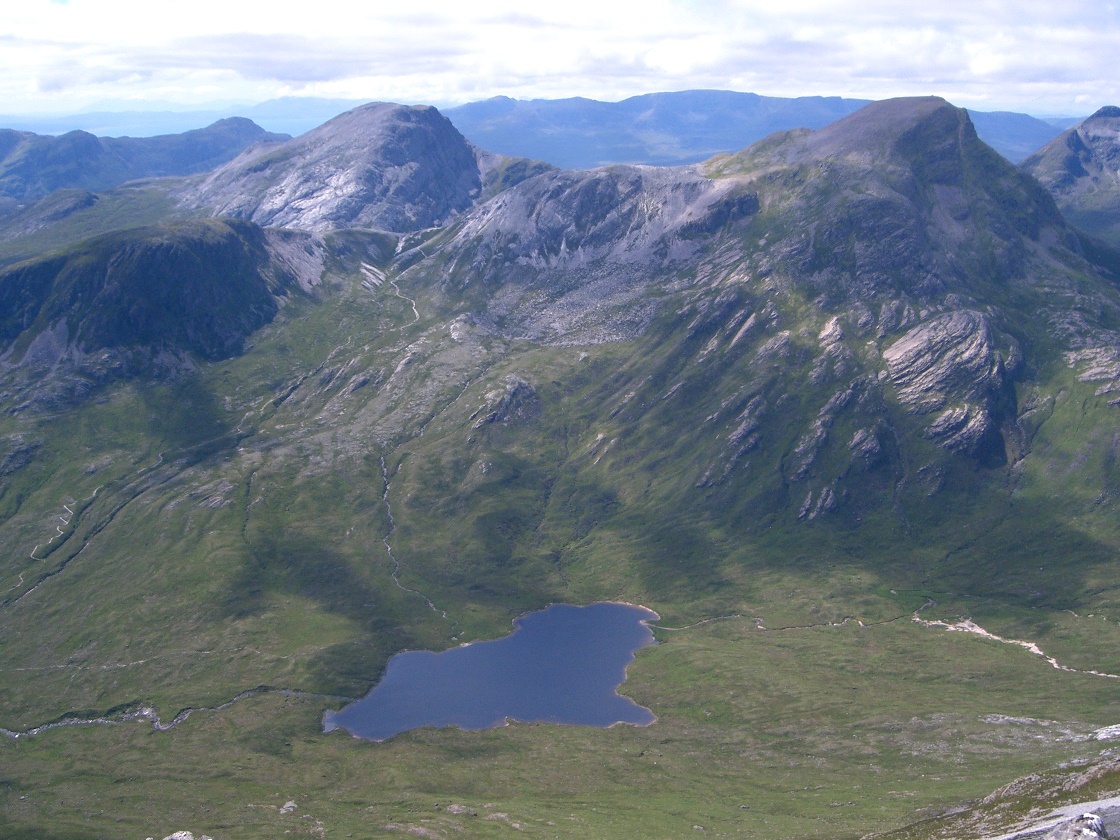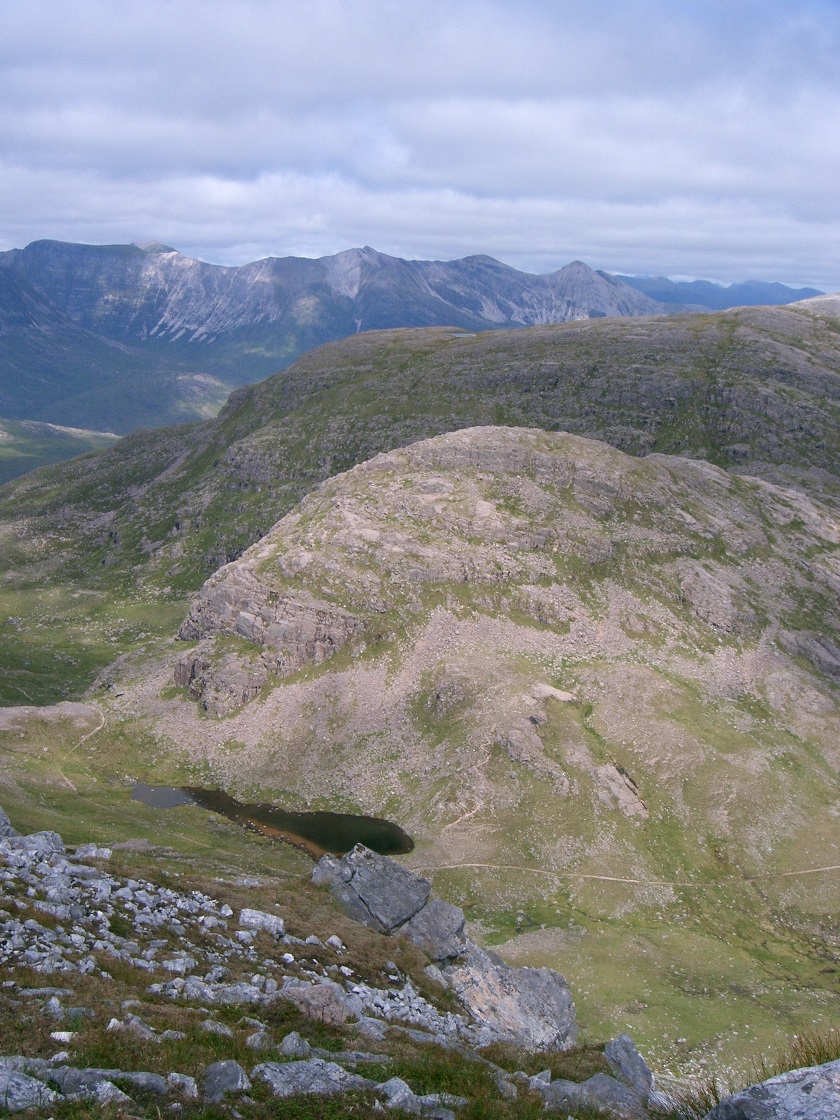| S (no path) down slopes to Bealach Mhoir (where there are tiresome hillocks & lochans) |
