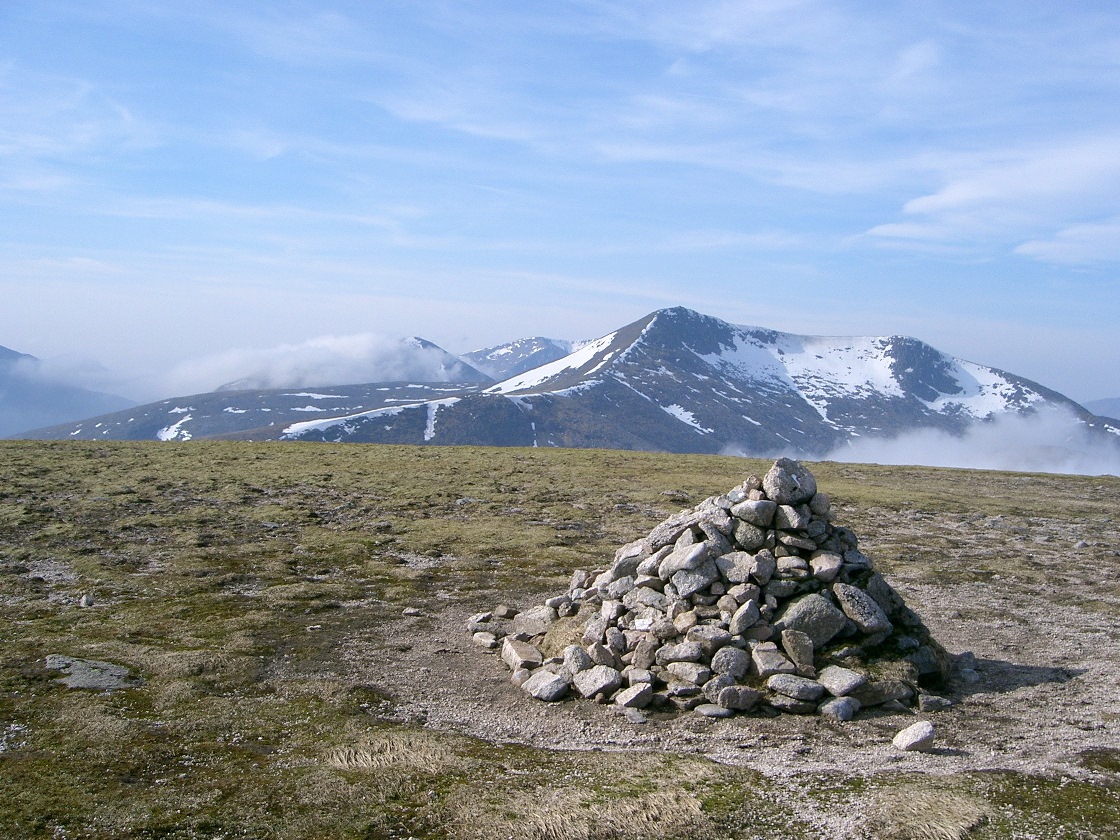 | 1040 | 1015 | Either (more interesting) E to northern bealach of Lairig Dhochard Or (not done) SSE to bealach with Meall Tarsuinn Or OpenStreetMap path directly up NW ridge |